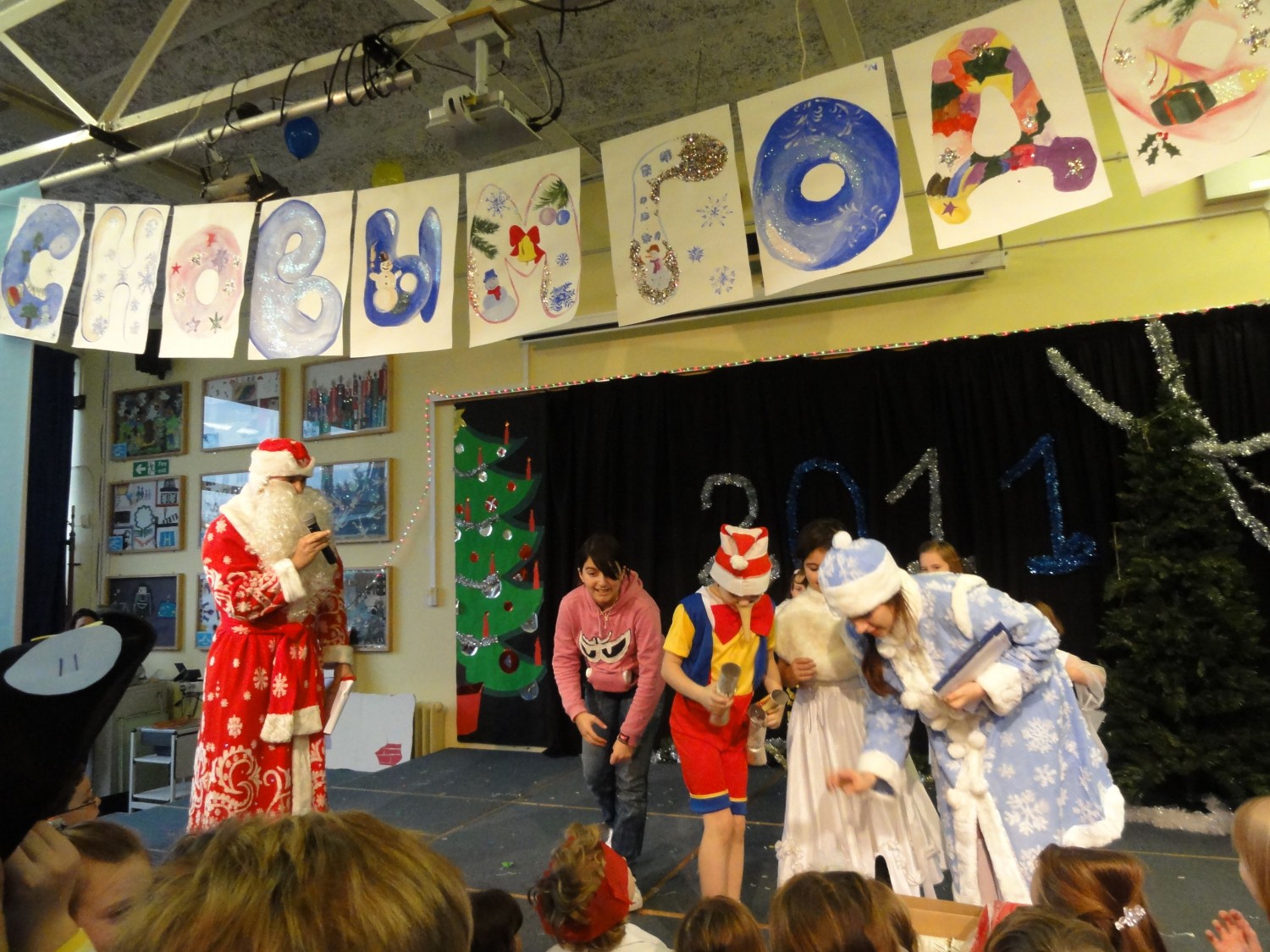 Школа выражает благодарность всем сотрудникам и родителям, принявшим участие в подготовке праздника. Представление и традиционная елка доставили радость более чем сотне ребятишек! Поздравляем всех с наступающим Новым 2011 годом!